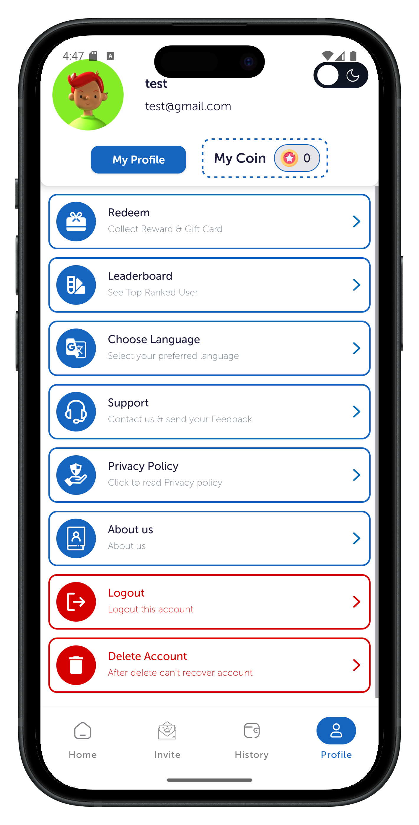 Enjoy fun daily games and earn coins while playing. Invite your friends and receive a bonus when your friend completes their first redemption!