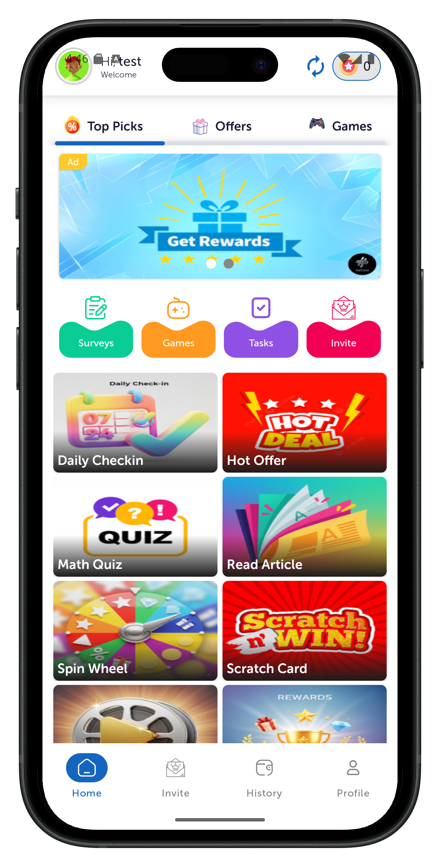 Enjoy fun daily games and earn coins while playing. Invite your friends and receive a bonus when your friend completes their first redemption!